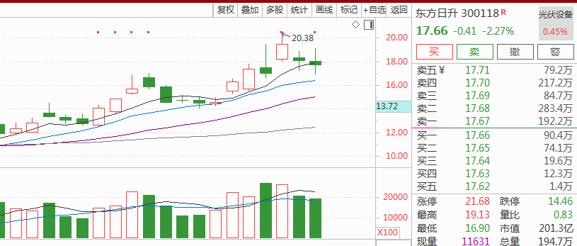 东方日升:今日呈现冲高回落态势,最终收阴。早盘的拉升未能形成有效突破。消息面上,“自2026年1月14日起,对原产于美国和韩国的进口太阳能级多晶硅继续征收反倾销税,期限5年”的政策利好,市场反应相对平淡。公司作为国内量产50μm超薄P型HJT电池的领先企业,技术优势明显,并兼具商业航天属性。从技术图形看,今日股价在触及5日均线后获得支撑,尾盘有所回升,近四个交易日中三日收出长下影线,其走势可能类似去年12月底至1月初的短暂调整后再度上行模式,值得后续跟踪。$东方日升(SZ300118)$