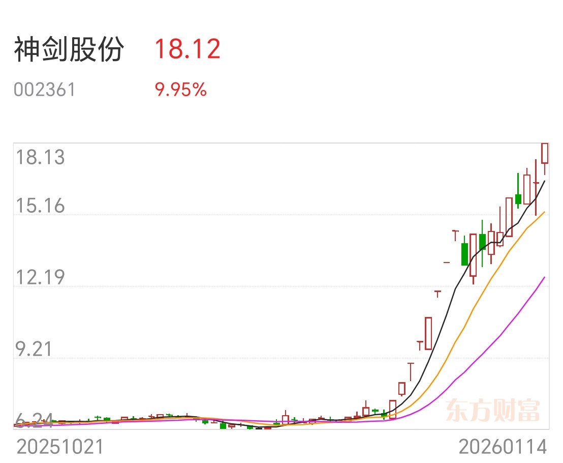 交易所2026年1月14日公布的交易公开信息显示,神剑股份因成为日换手率达到20%的前5只证券上榜。神剑股份当日收报18.12元,涨跌幅9.95%,偏离值37.74%,换手率37.99%,成交额54.17亿。