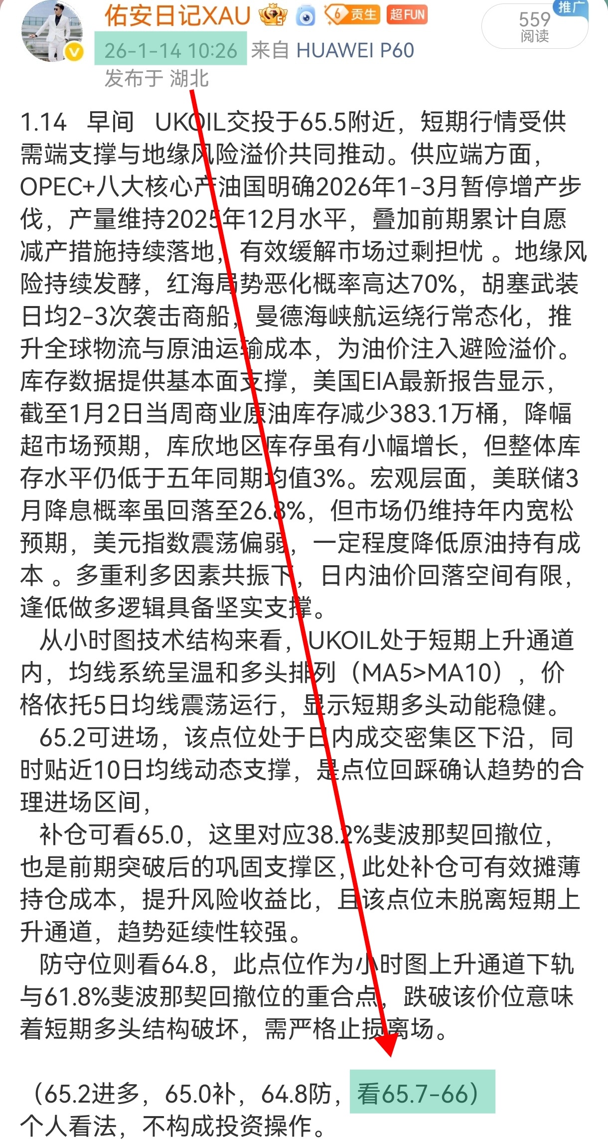 原油日内佑安基于OPEC+暂停增产、红海地缘发酵等因素给出的目标点位区间65.7