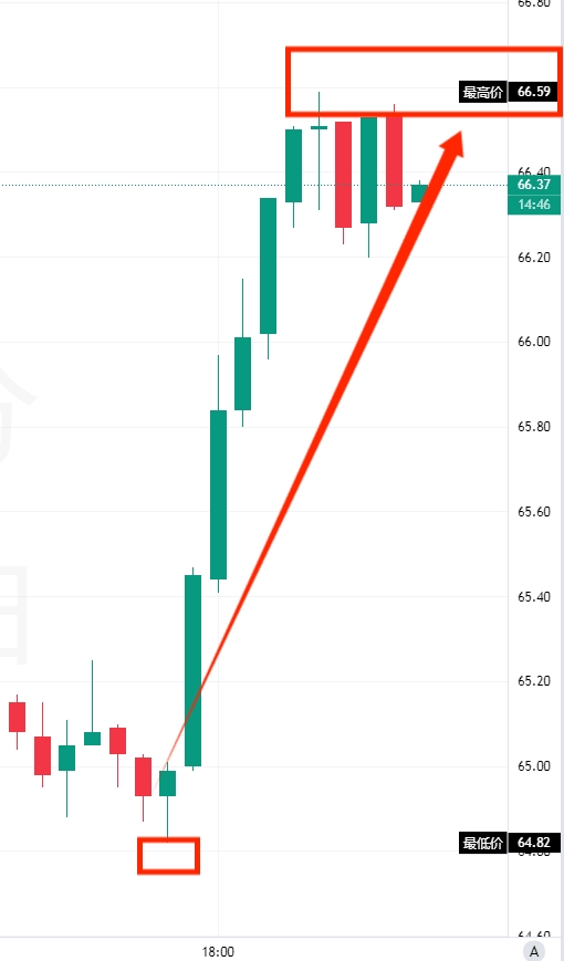原油日内佑安基于OPEC+暂停增产、红海地缘发酵等因素给出的目标点位区间65.7-66已被走势抵达并有所突破,最高来到66.5。