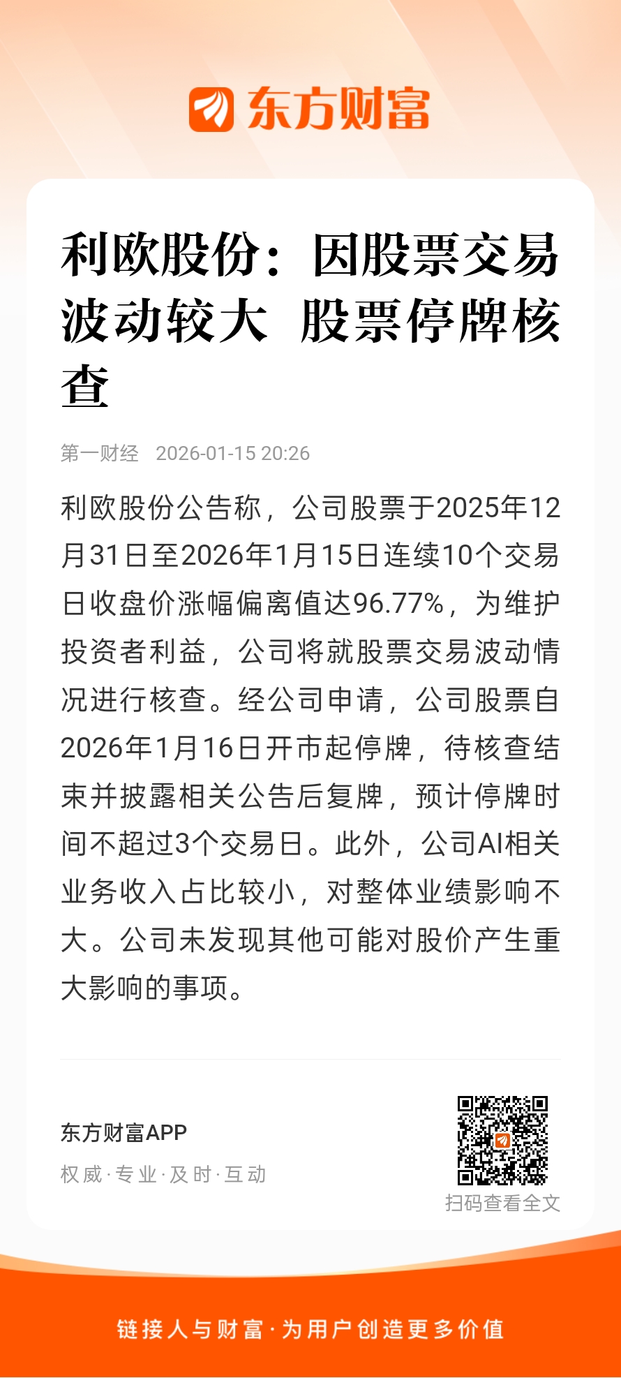 郑重声明:用户在财富号/股吧/博客等社区发表的所有信息(包括但不限于文字、视频、音频、数据及图表)仅代表个人观点,与本网站立场无关,不对您构成任何投资建议,据此操作风险自担。请勿相信代客理财、免费荐股和炒股培训等宣传内容,远离非法证券活动。请勿添加发言用户的手机号码、公众号、微博、微信及QQ等信息,谨防上当受骗!
