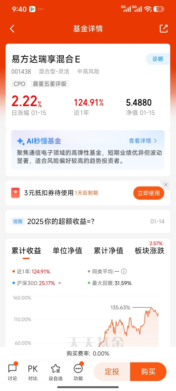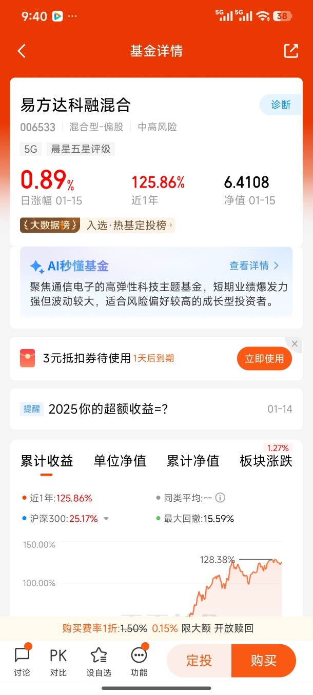 #2025超额关键词,2025超额关键词# 2025年,我的收益情况是3.75%,收益15815元。我的超额关键词是紧跟形势,抓紧科技。2025年,科技红了半边天,主投科技的基金都盈利增大,科技,AI。芯片,半导体成了热词。2026年,我将秉承科技理念,继续看好科技。@易方达基金