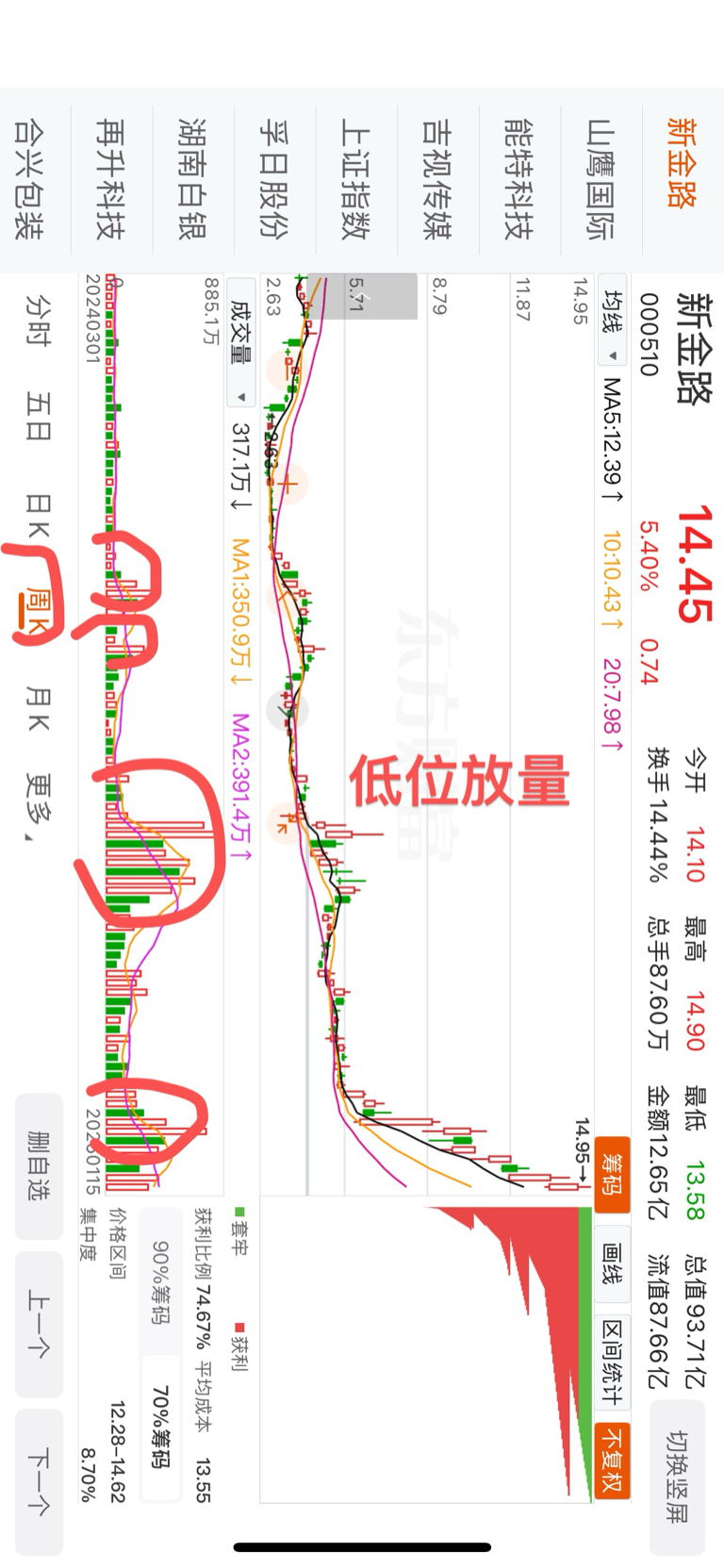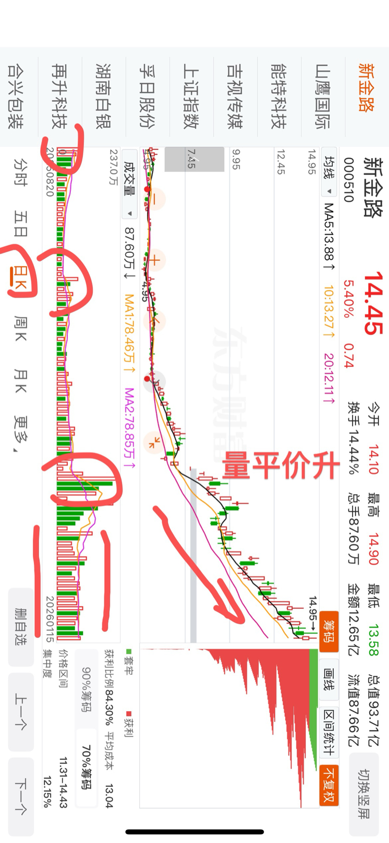 新金路-小路,今天继续震荡走高,前期出现放量后,股价就一路上涨,量平价升充分体现出来,把小路列为四大金刚后,小路的步伐还没停过,今天不得不拿小路来说一下,以此和大家分享,本来想等小路回调的,但小路天天创新高,把心一横就杀向小路,哈哈哈....明天展开对小路的追踪,股市有风险,投资需谨慎