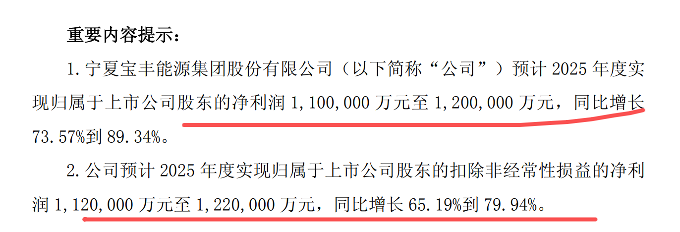 第八家:宝丰能源,净利润增74%到89%,达到110亿到120亿;