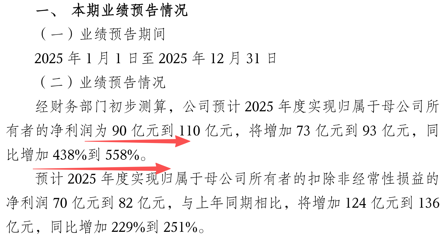 上汽集团2025年净利润增长438%到558%,净利润达到90亿到110亿元。