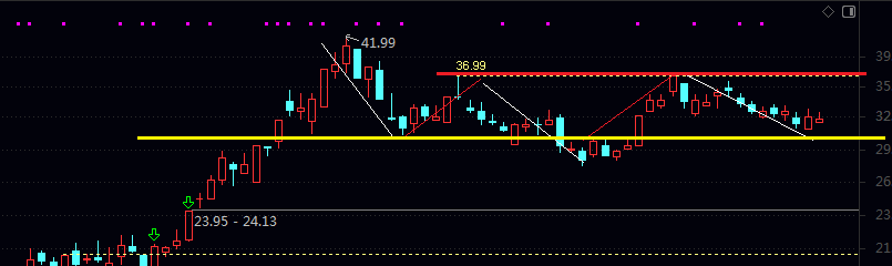 多多调整三个月,目前基本为热点板块或个股上涨与调整的基础时间空间,加上60日三天的支撑,整体日线形态为大型三角形整理末端,可以用之前巨额盈利做安全垫尝试小仓位试错