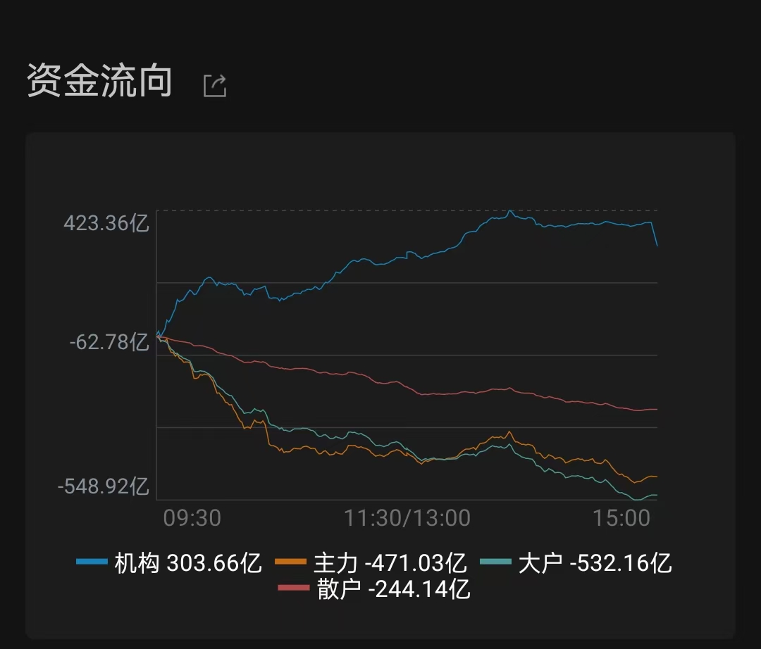 全天净流出,只有机构逆行,难道不听话?还是另有图谋?用时间印证吧