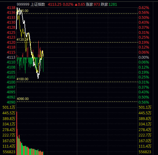 竞价结束,4127.06, 14.46, 0.35,再次逼近五日线