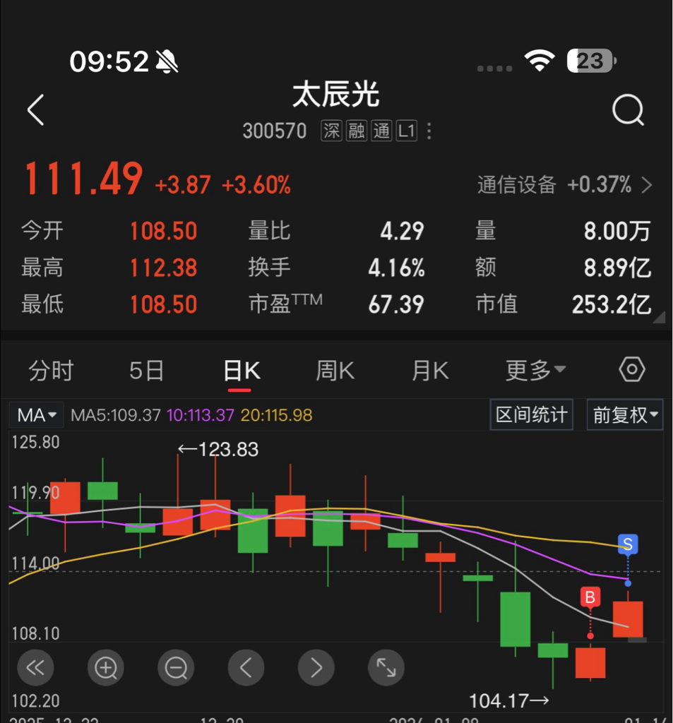 昨日我满仓,新建仓了天岳先进和太辰光,今日大涨,由于做的是短线标的,刚才已清仓。接下来再看盘中情况买点什么。