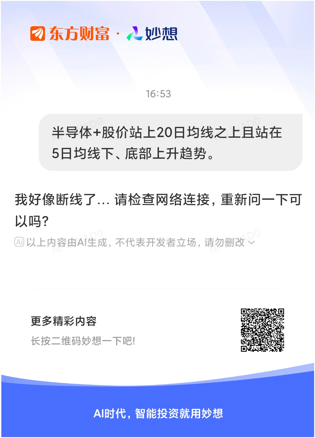 #@妙想,你怎么看?# 妙想一下:半导体+股价站上20日均线之上且站在5日均线下、底部上升趋势。