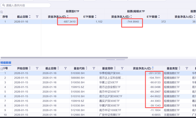 比如,周四这天,ETF整体流出了687亿。规模型ETF更是流出了744亿。明显就是国家队在抛售打压投机多头。