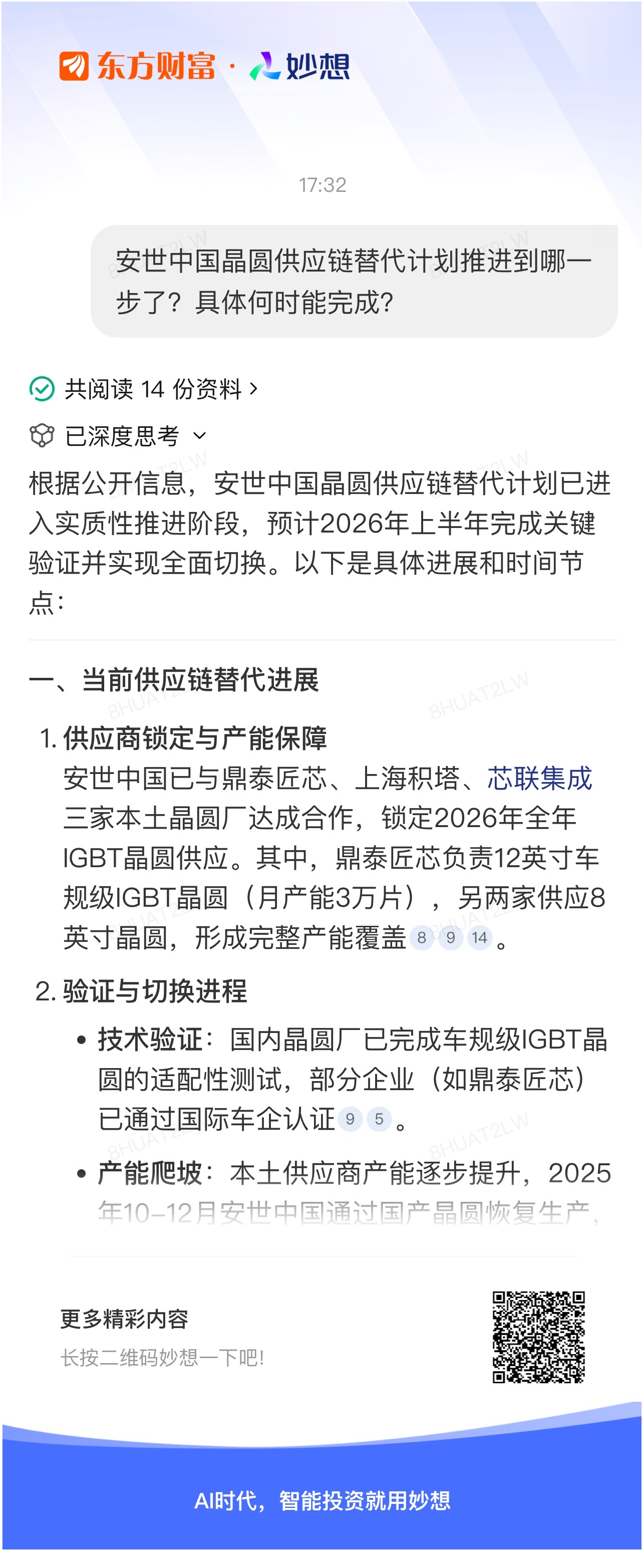 妙想一下:安世中国晶圆供应链替代计划推进到哪一步了?具体何时能完成?