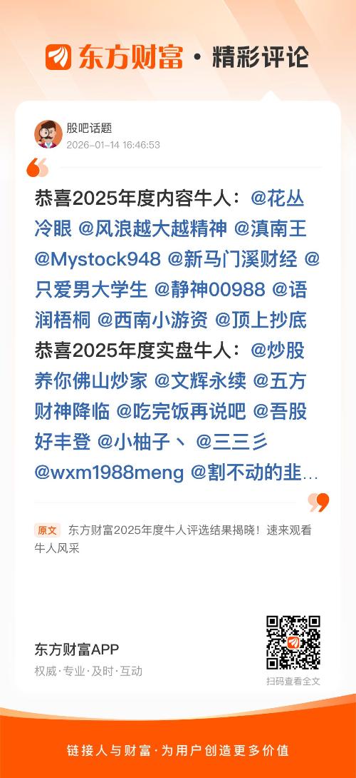 (来源:股吧话题的财富号 2026-01-14 15:00) [点击查看原文]
