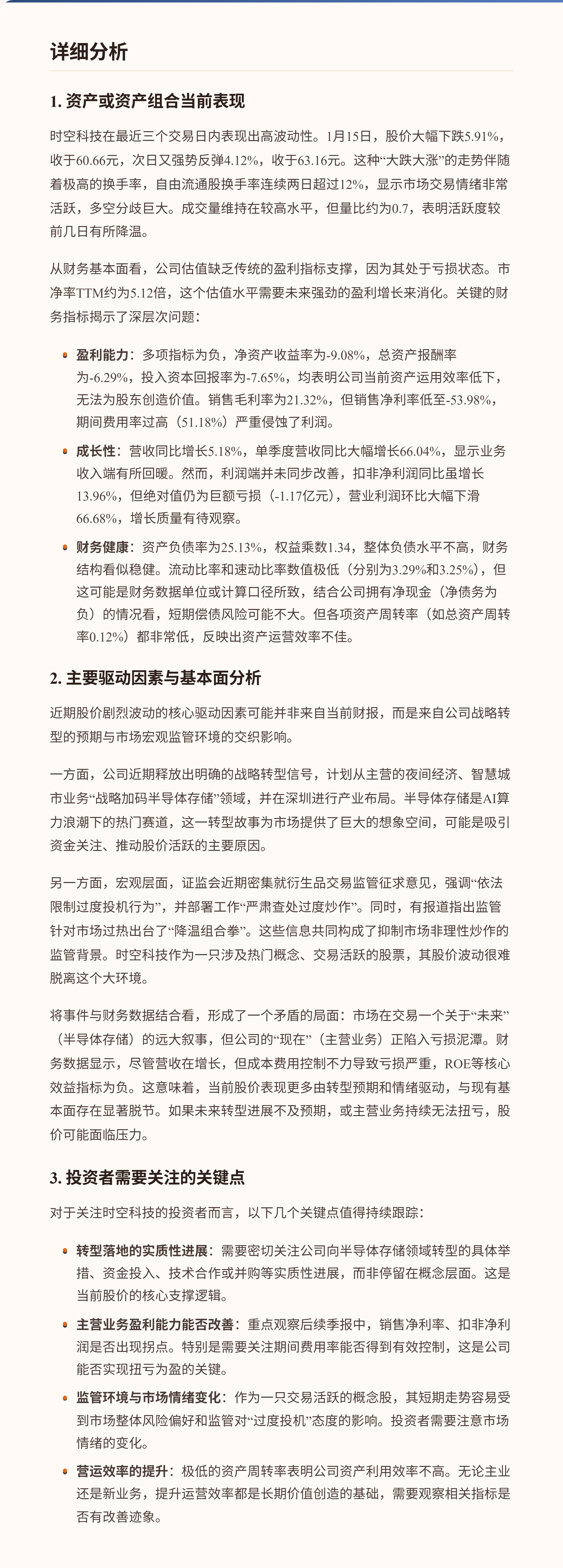 时空科技近期股价波动剧烈,其核心投资逻辑在于公司正从传统的夜间经济与智慧城市业务