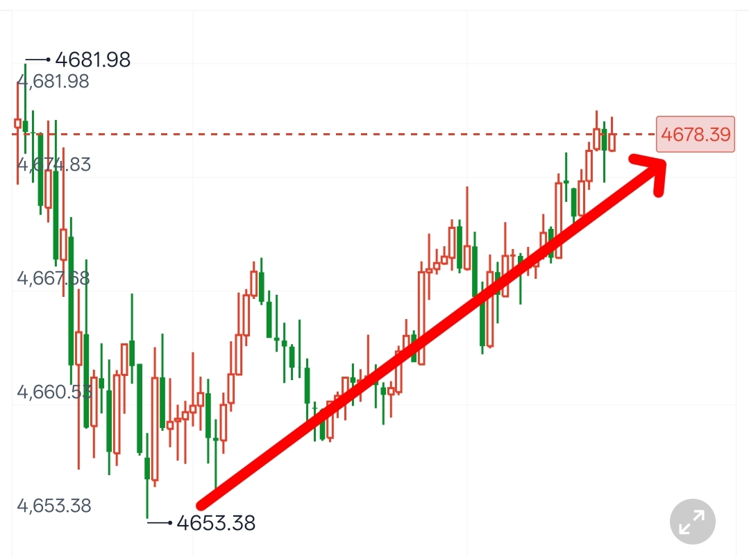 早间金价回落至4653关键支撑位后企稳回升,哆头快速发力上攻,日内最高触及4679一线,拿下26点利润!