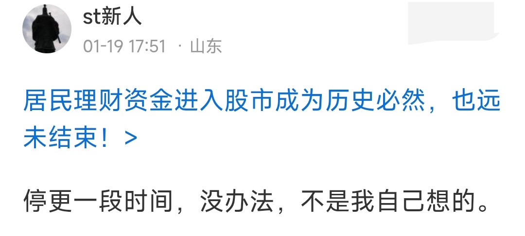 2026年1月19日(辞忆十三年十二月初一),ST新和政委发帖宣布停更一段时间。