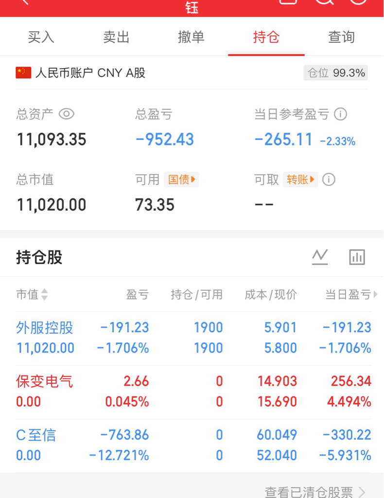 1.19炒股1万到10万(第10天1.11万)