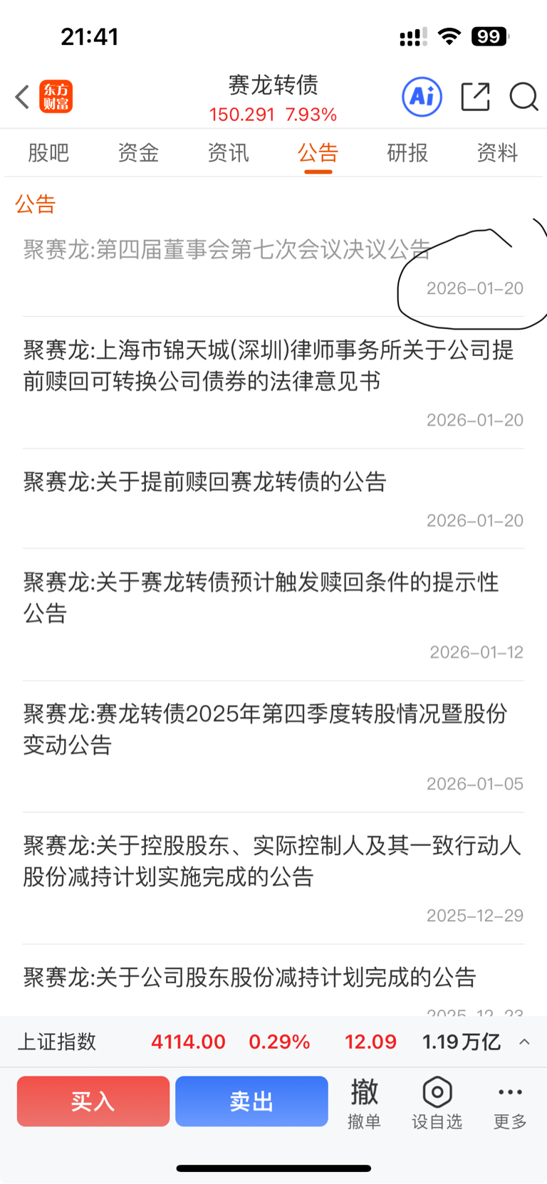 现在时间是2026年1月19日21:45分,这个公告咋还能提前一天发呢