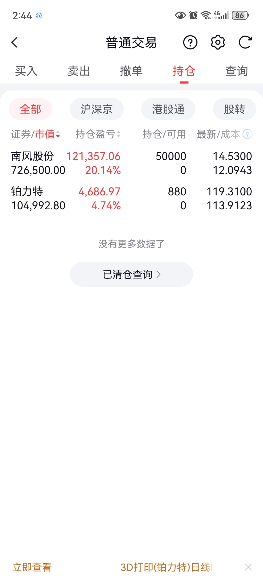 南风股份航天卫星和液冷3d打印从0--1,1--10,还有基本盘核电题材,未来一段时间就持有它了,铂利特只留了一个纪念