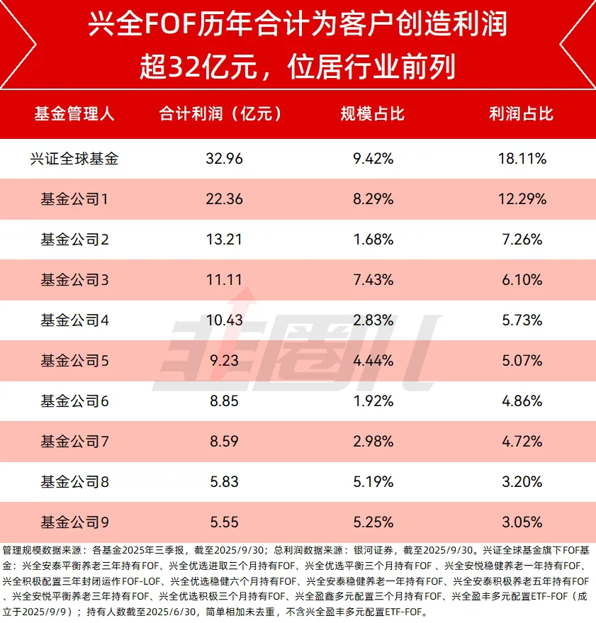 而兴全FOF旗下产品,这些年合计为客户创造利润超32亿元,也处于行业前列的位置。