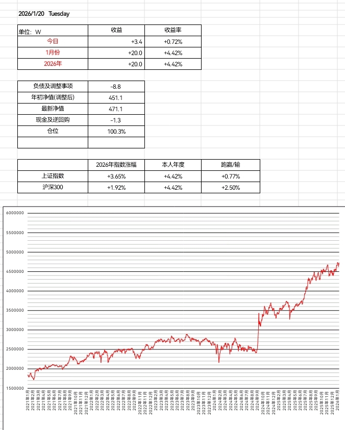 2026.1.20周二今天+3.4w(+0.72%)2025年+20w(+4.4