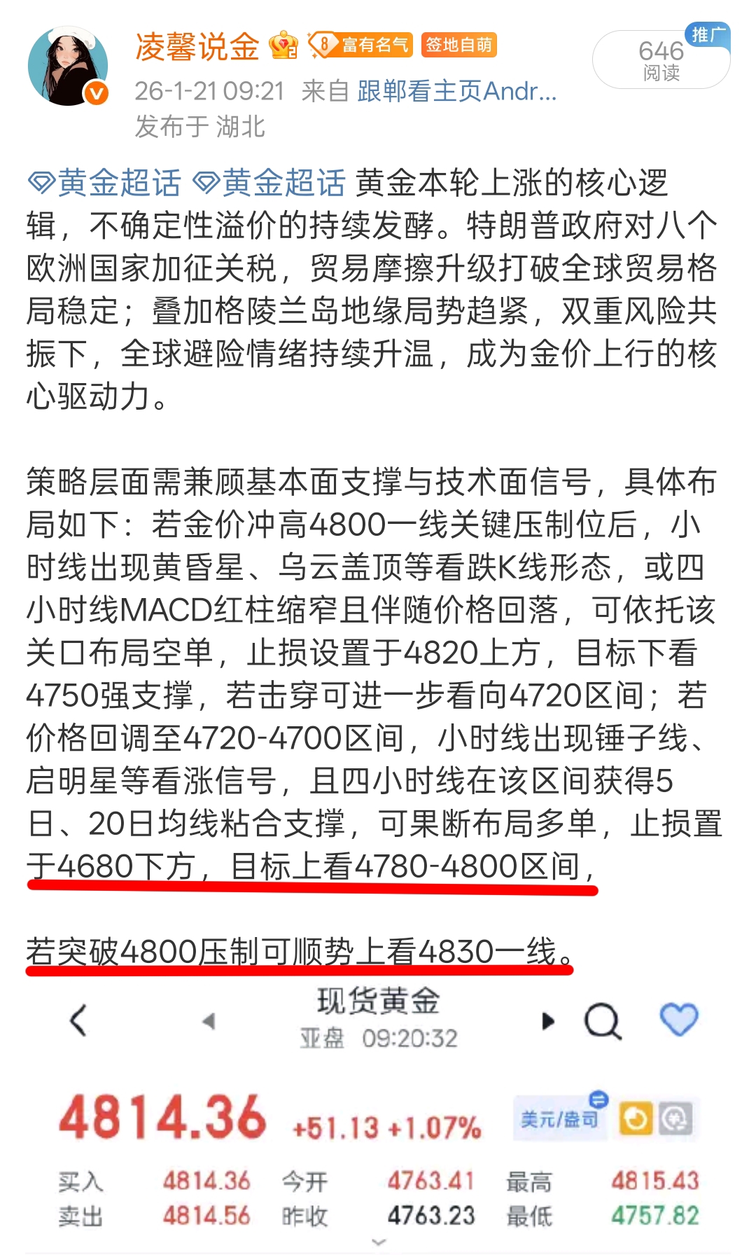 连胜一!黄金早间在4885进哆,4800关口离场,拿下15个点!丝毫不恐高,趋势怎么来我们就怎么走,逆势只会死的很惨! #炒股日记# #复盘记录# #股市怎么看# #强势机会#