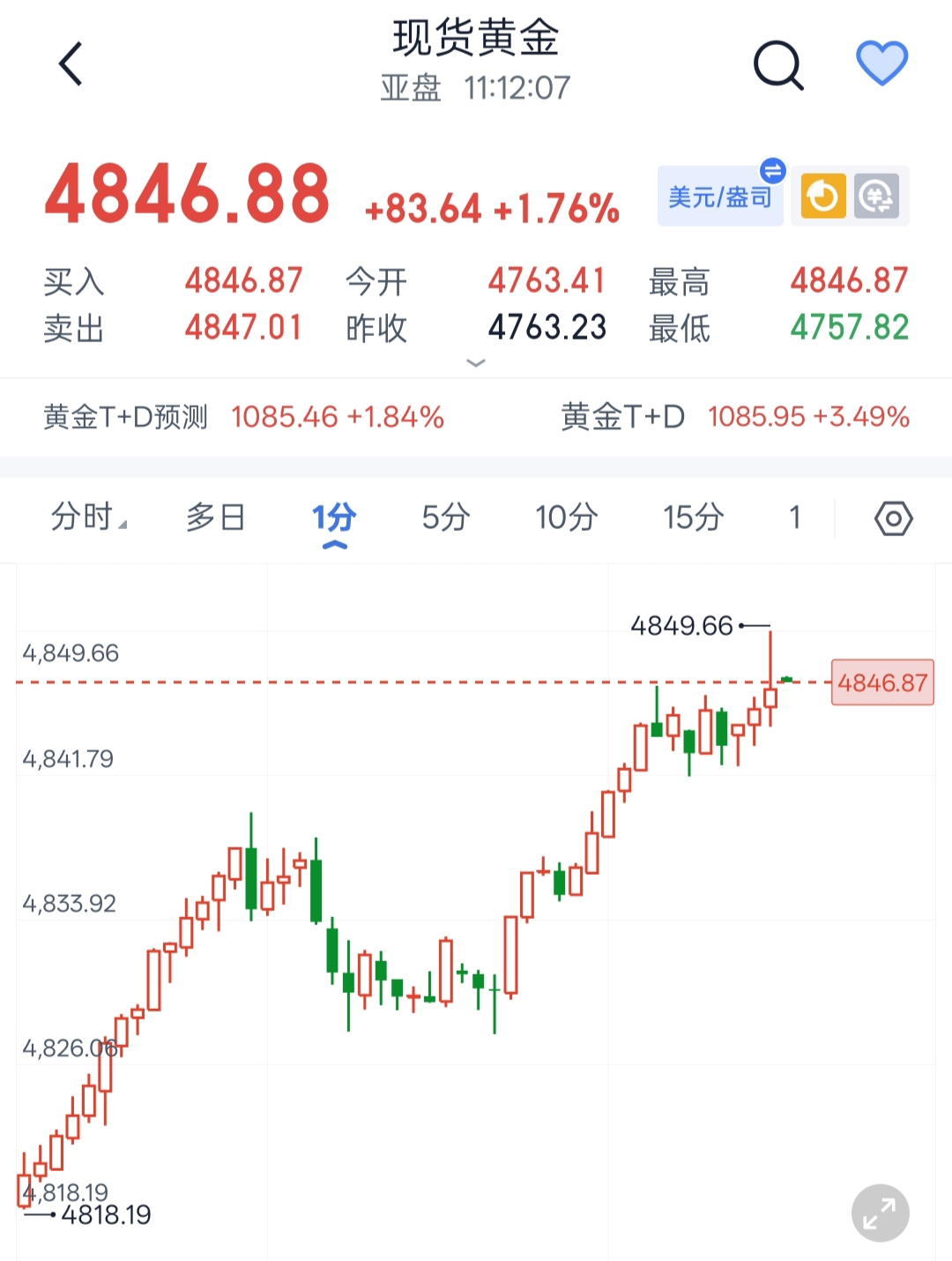 凌馨早间提示突破4800我们顺势看4830,4850一线,目前最高已触及4849,距离我们的目标毫厘之差,下一个目标强势看向4900!