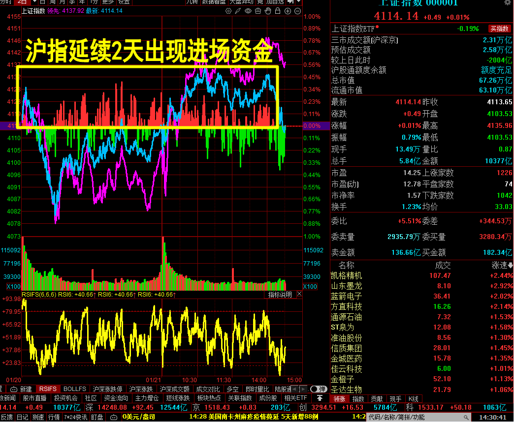 沪市延续2天出现进场资金