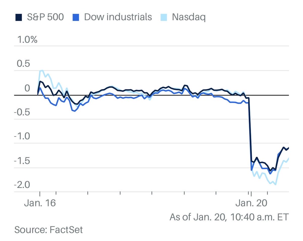 美股三大股指目前跌幅都还超过百分之一,金银大涨,但银价涨幅有所回吐。