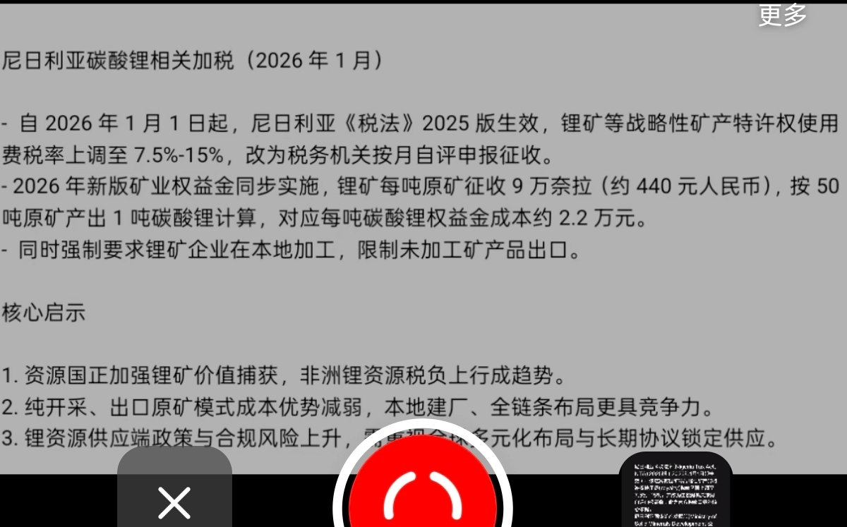 尼日利亚、刚果金提高资源出口权益金税近15%,摊折成碳酸锂成本近3万元,所以碳酸