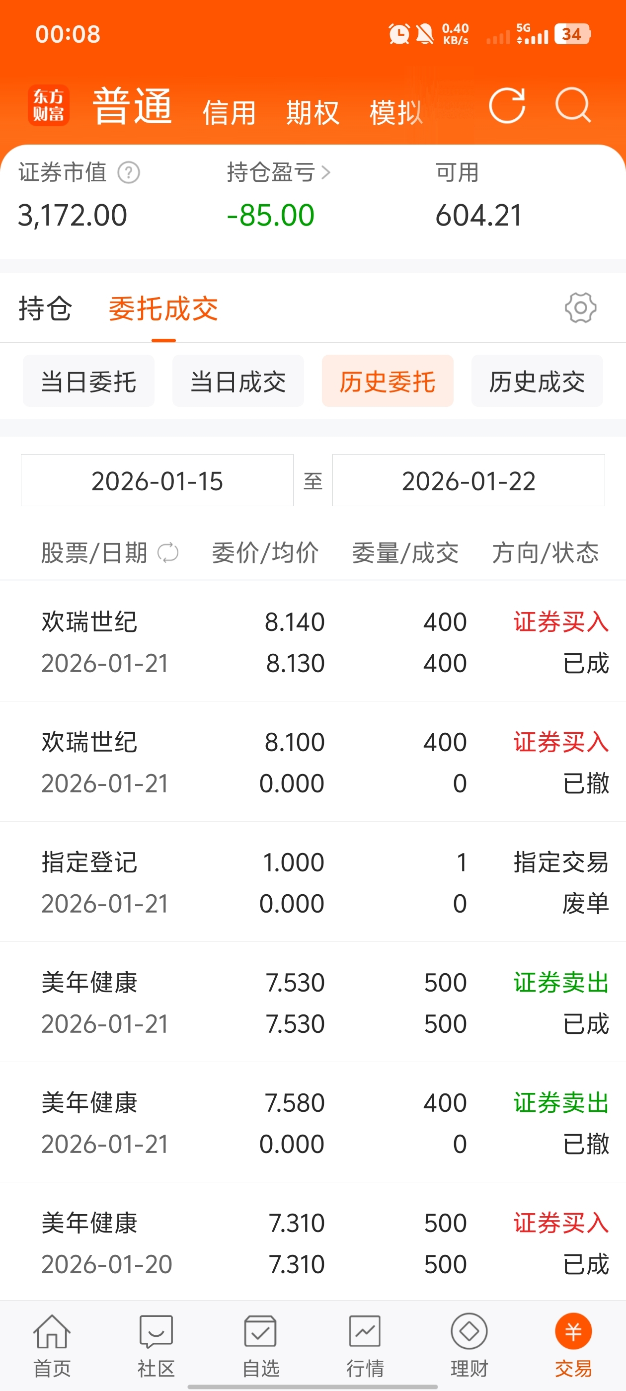 今天卖出美年健康,卖出逻辑避险,毕竟之前连跌了好几天,集合竞价低开,上午启动这么