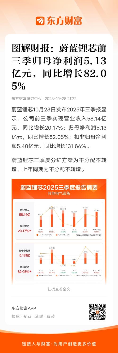 蔚蓝锂芯三季度分红方案为不分配不转增,上年同期为不分配不转增。
