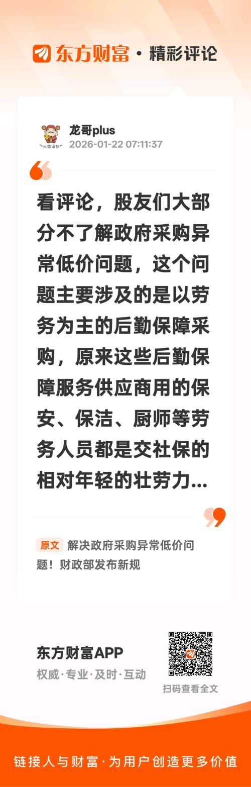 1月21日,财政部发布关于推动解决政府采购异常低价问题的通知。