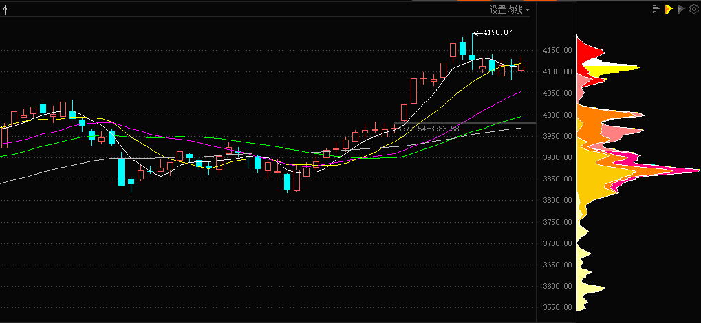 昨天市场量能呈现明显萎缩态势,清晰反映出场外紫金入场意愿不足。当前市场表现更多是场内紫金在关键支撑位展开的技术性抵抗,并非新一轮上涨行情的启动信号。尾盘勉强维持红盘的走势,核心目的在于守护技术形态免于彻底破位,但这一过程持续消耗存量紫金动能,属于强弩之末的震荡格局。一旦支撑失效市场回调力度或将超出预期。关于当前市场平衡的持续性及后续走势,观点如下:当前 4080-4100 点区间的支撑并不稳固,仅在此区间企稳尚不足以构成明确的进场逻辑。不过近期该区间内已出现小级别交易机会,且盘中已实时提示。建议股友们理性把握机会,既不盲目观望错失窗口,也不事后追悔抱怨,秉持成熟的投资心态应对市场波动。
