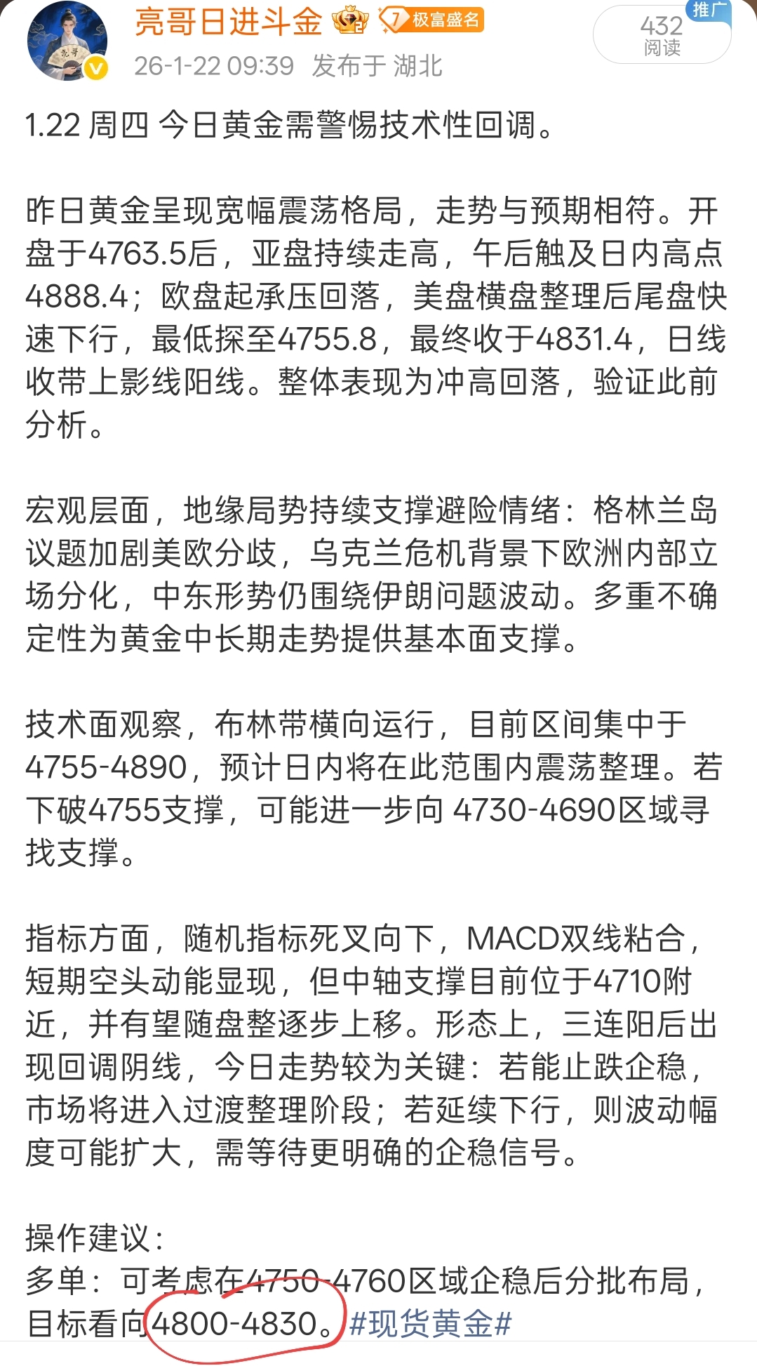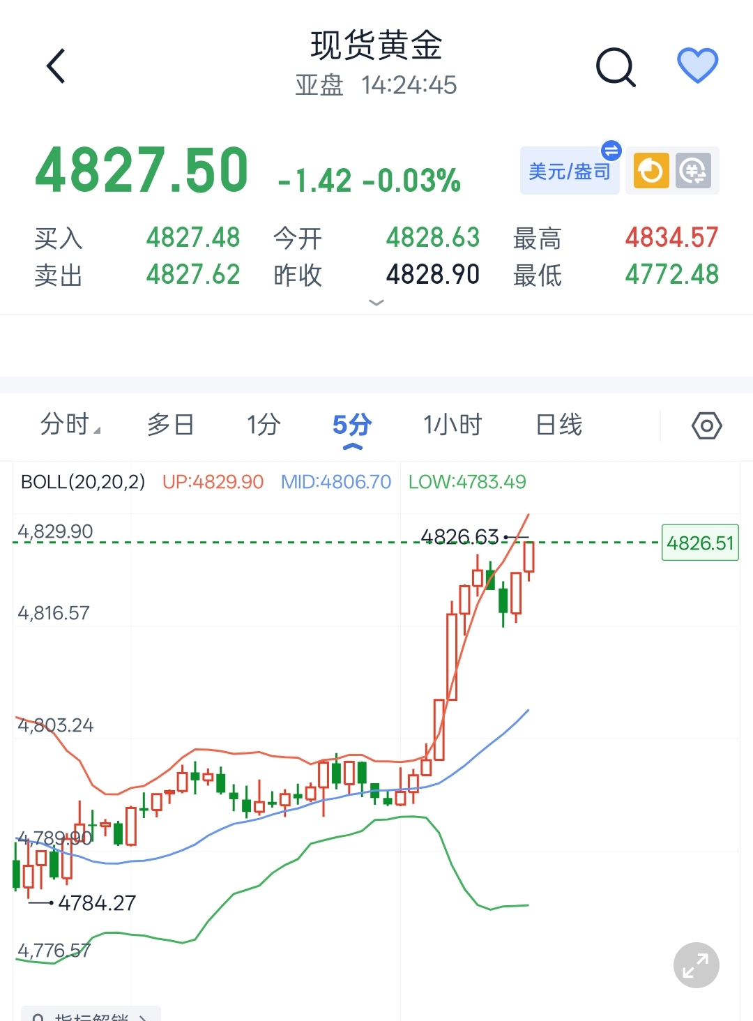 周四黄金早间思路兑现!回踩4775接多至4827,52个点!