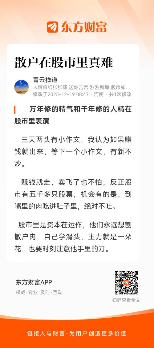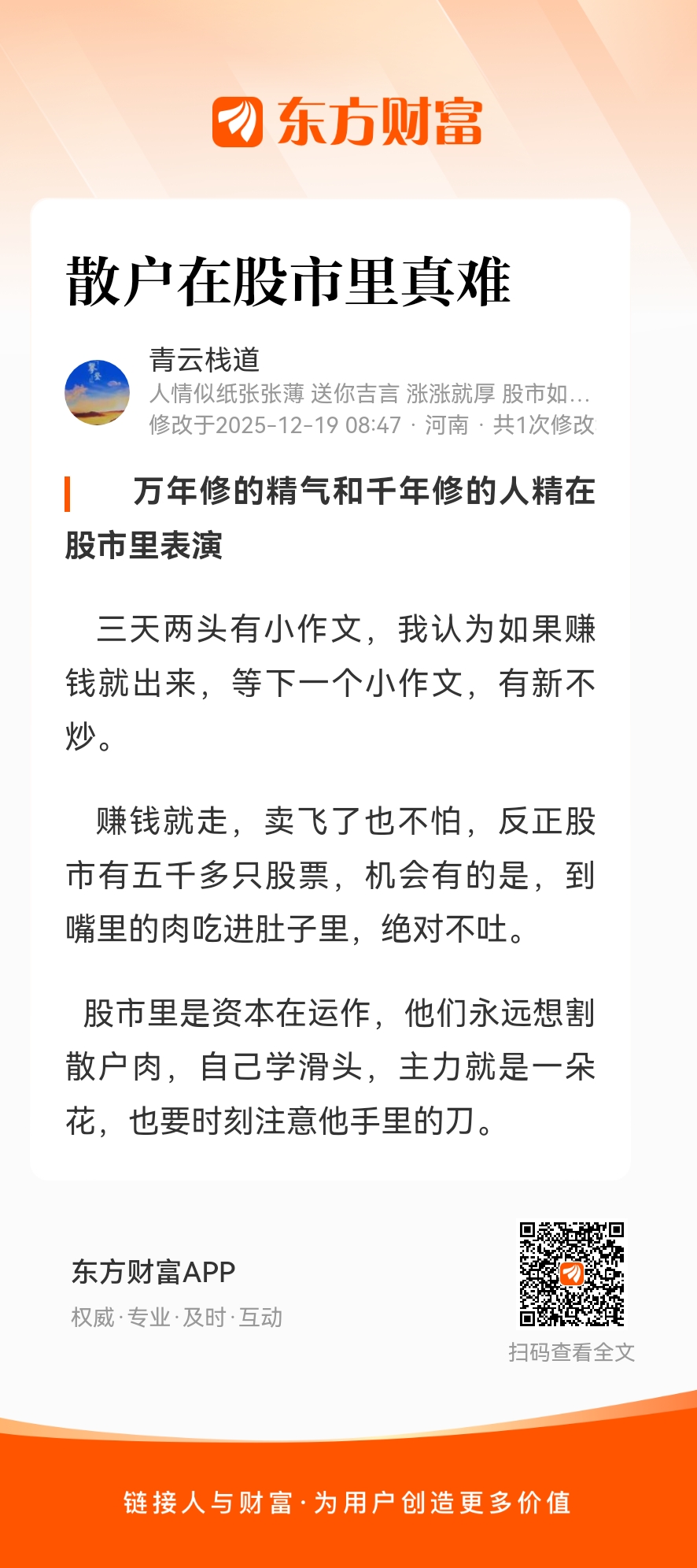 温馨提示: 1.根据《证券法》规定,禁止编造、传播虚假信息或者误导性信息,扰乱证券市场;2.用户在本社区发表的所有资料、言论等仅代表个人观点,与本网站立场无关,不对您构成任何投资建议。用户应基于自己的独立判断,自行决定证券投资并承担相应风险。《东方财富社区管理规定》