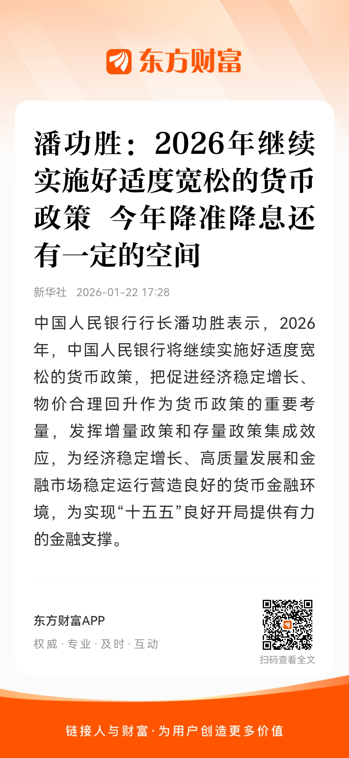 答:2026年,中国人民银行将继续实施好适度宽松的货币政策,把促进经济稳定增长、物价合理回升作为货币政策的重要考量,发挥增量政策和存量政策集成效应,为经济稳定增长、高质量发展和金融市场稳定运行营造良好的货币金融环境,为实现“十五五”良好开局提供有力的金融支撑。