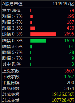 红3507绿1767平200;涨停79跌停3