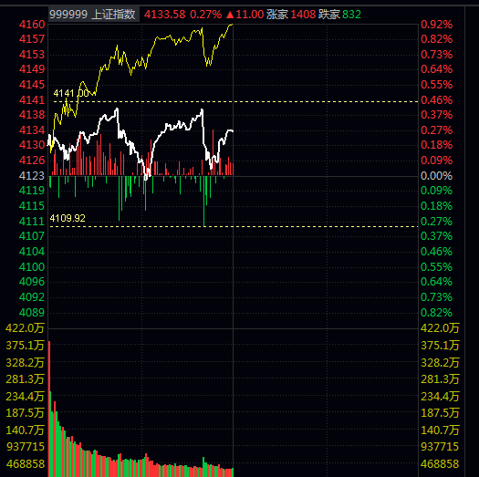 午收盘,4133.58, 11, 0.27%,成交量1.914万亿
