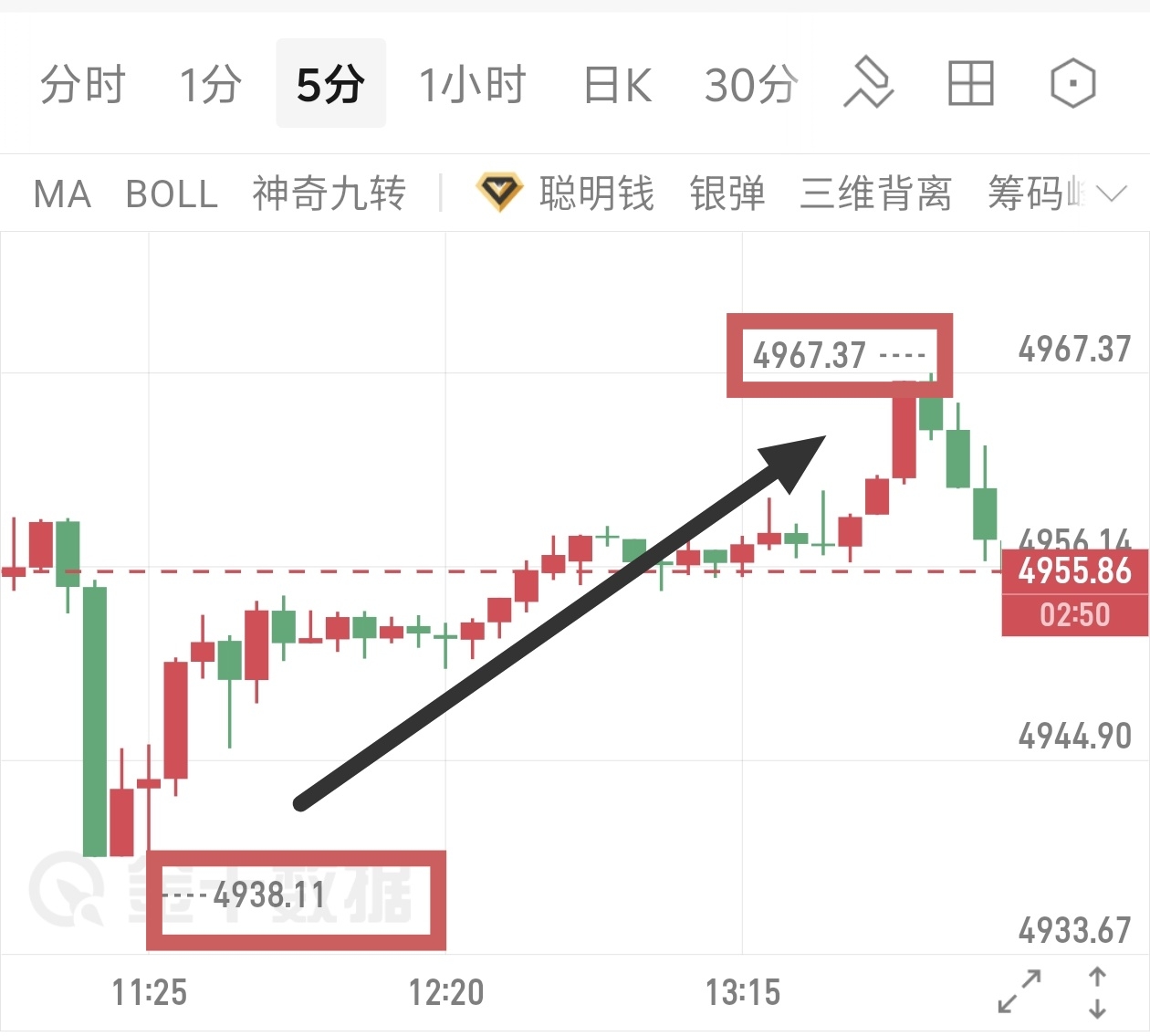 早间给的多单思路再次完美契合,目标位已抵达,4935附近布局多单,最高来到4967