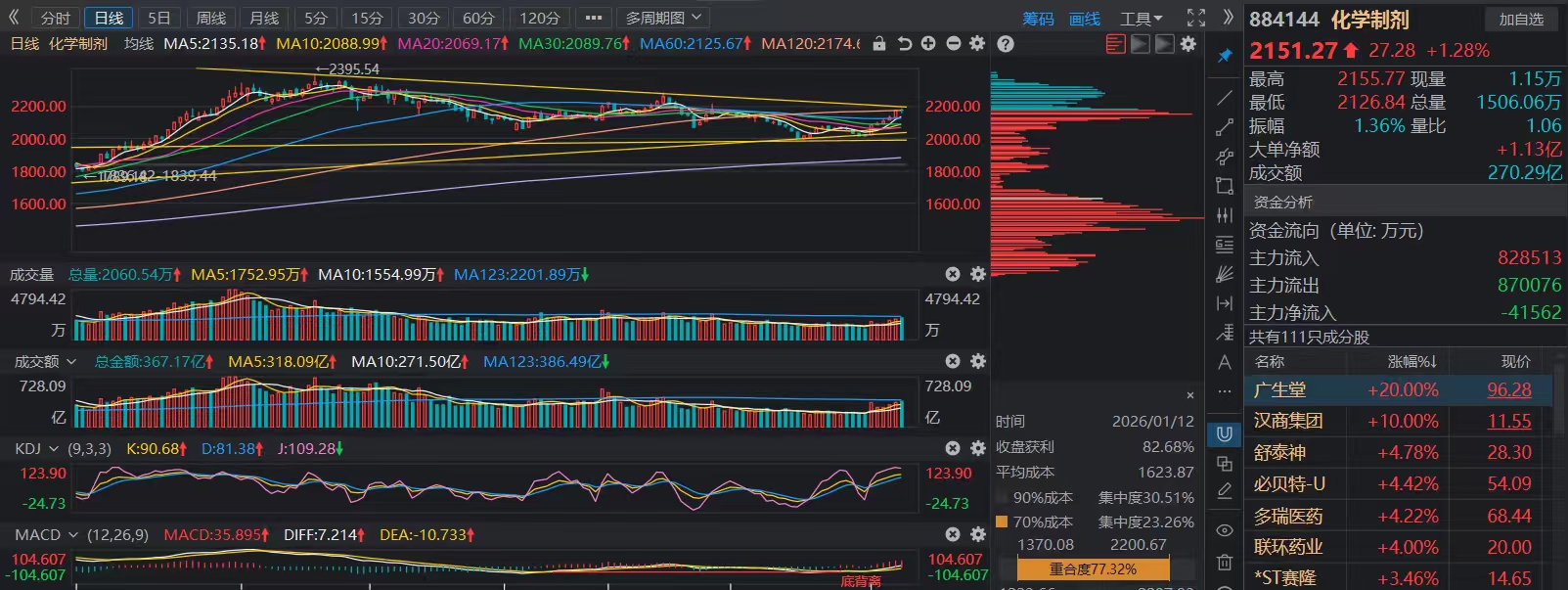 化学制剂板块看这张截图吧,黄线更完整些。看板块会怎么走后续