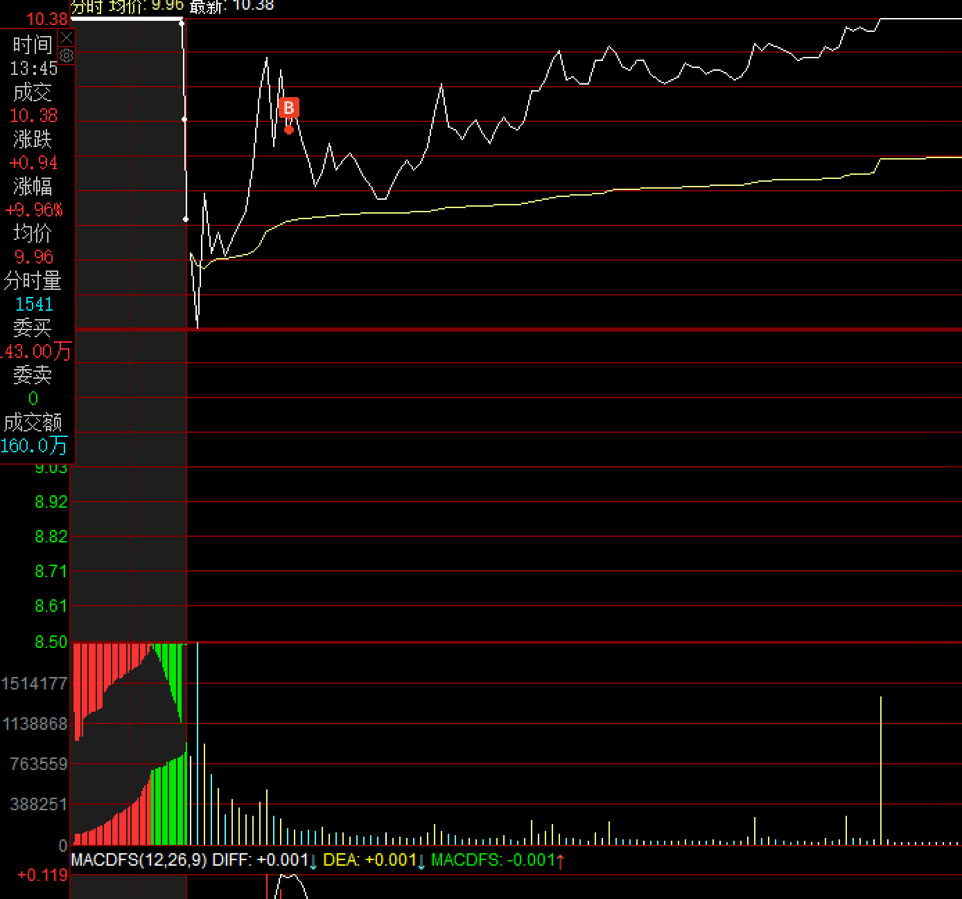 卖出:1月9日,卖出10.5附近,多笔卖出,卖出的原则应该还是套利,最好的操作是5个点附近,没有涨停迹象就走。或是破均线走。继续观察如果第二天前再进场。