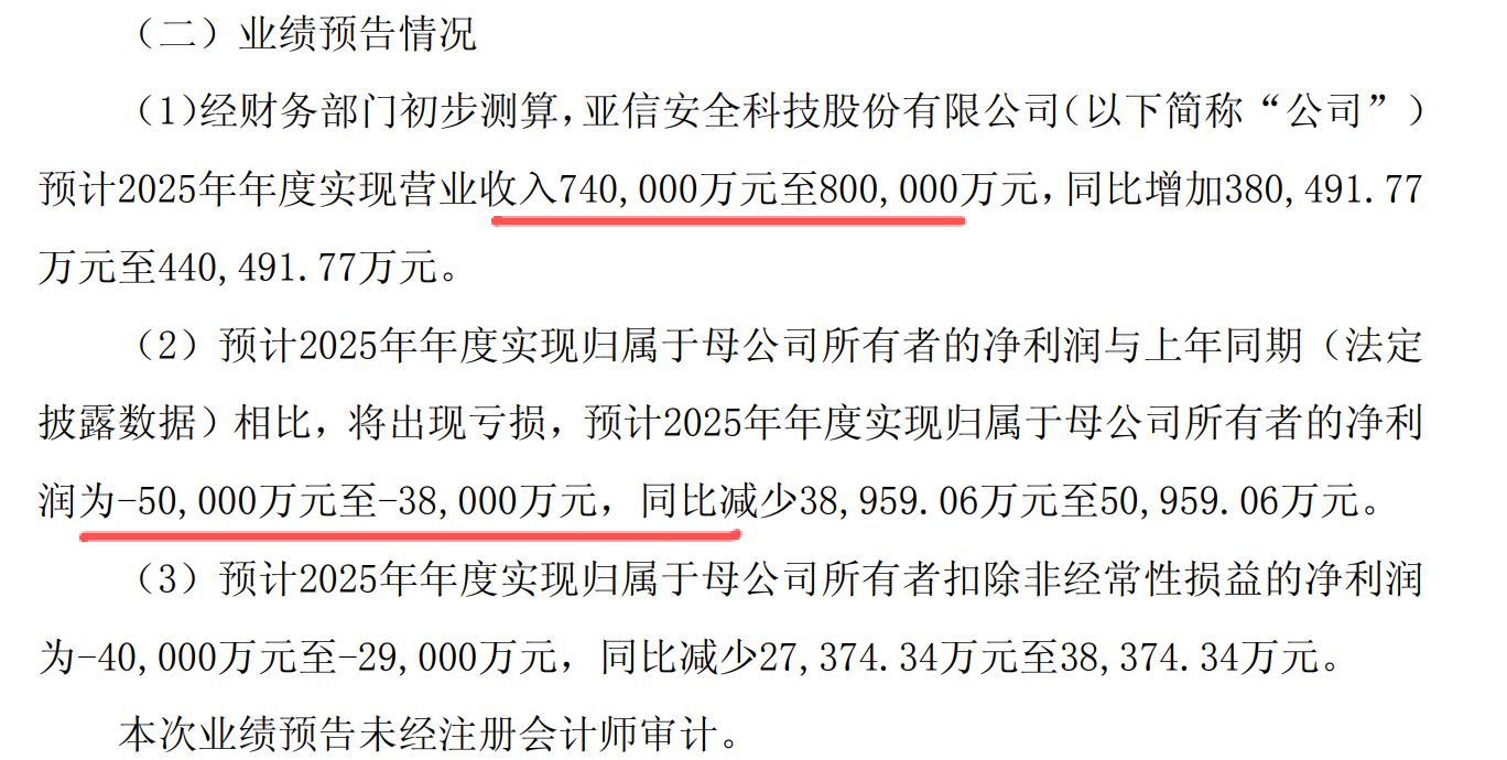 亚信安全,2025年公司的收入增长到74亿到80亿元,而亏损了3.8亿到5亿元,净利润大幅下滑4688%。