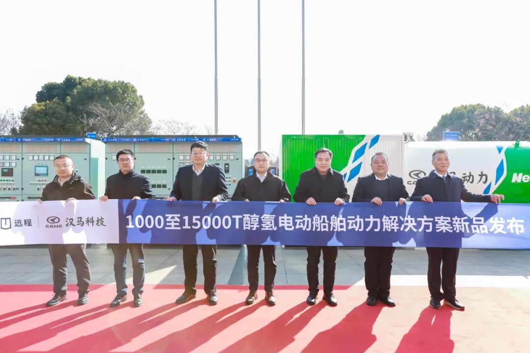 据了解,搭载汉马科技醇氢电动系统的船舶目前已在长江、珠江、淮河、京杭大运河等多个流域推广应用,目前在全国主要内河水系下水或正在建造的醇氢电动船舶已有67艘,计划建造的醇氢电动船舶超过120艘。其1000至15000T醇氢电动船舶动力系统全新解决方案将船用醇氢发电机组、甲醇燃料供给系统、船用动力电池、电力推进系统等模块进行高度集成,实现低排放、高安全、高经济性、超安静的目标,成为船舶绿色营运的首选动力模式。