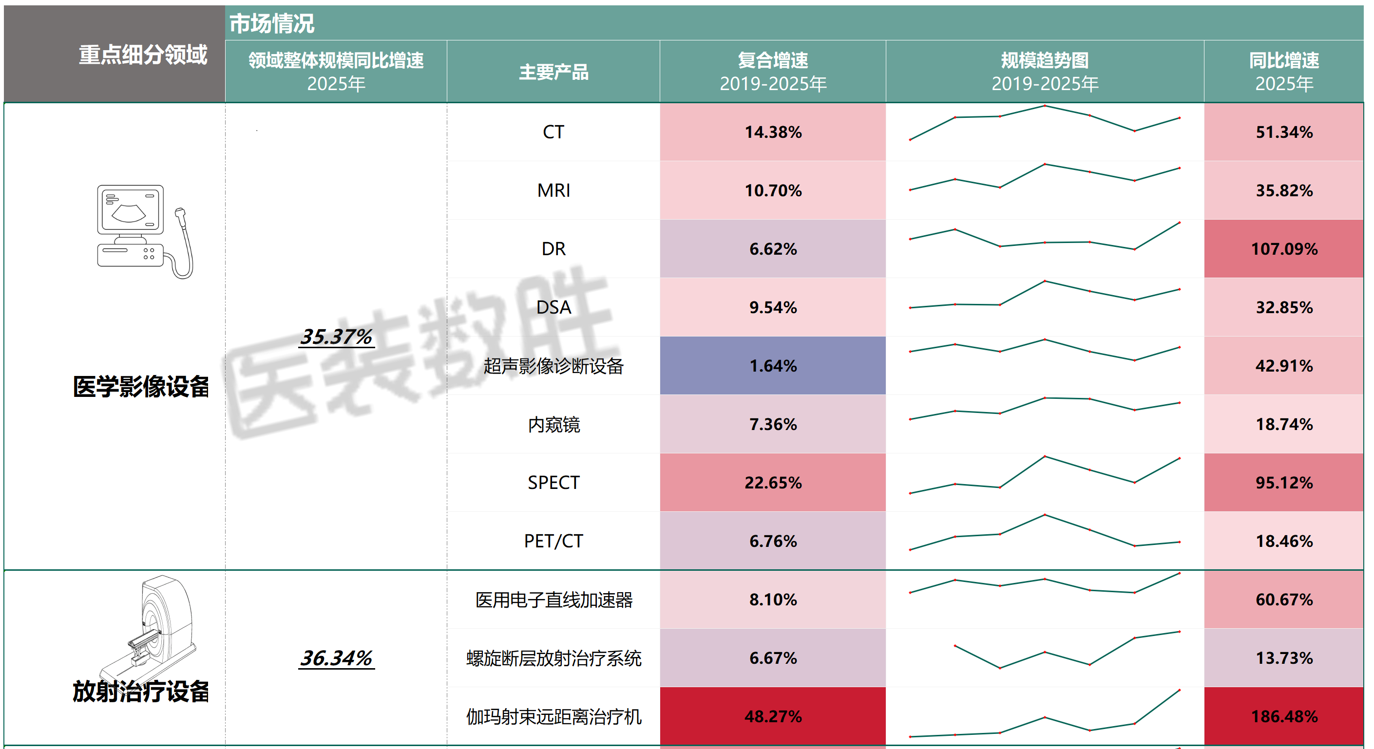 25年医学影像设备同比35.32%,放射治疗设备同比增长36.34,与西南证券的数据基本可以印证。