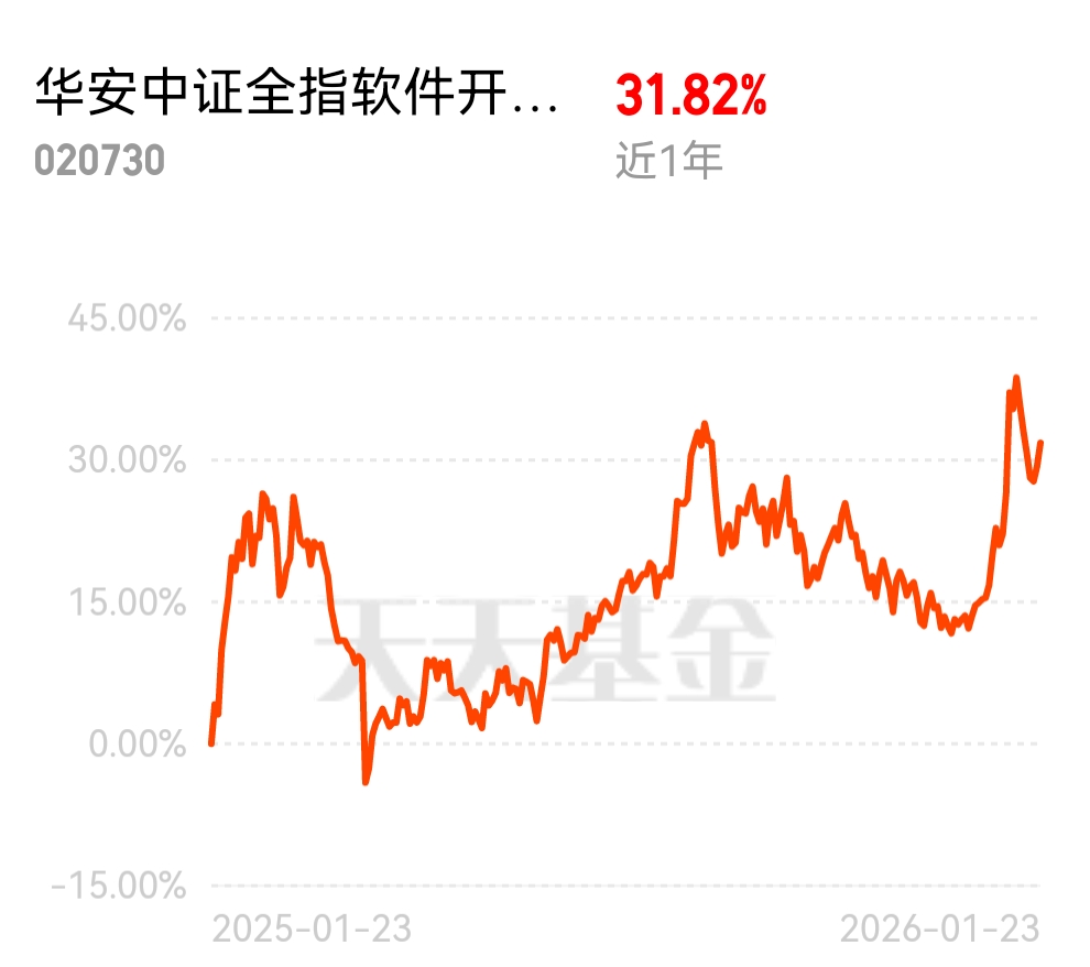 #金价突破5000美元!机构猛吹,金价突破5000美元!机构猛吹# 我持华$华安中证全指软件开发ETF发起式联接C$ 太香了!近1年31.82%,覆盖AI+云计算+工业软件,赛道契合新质生产力,跟着指数吃肉超给力
