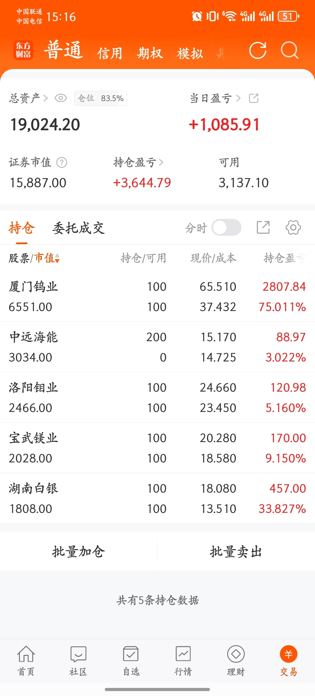 新手入坑两周,赶上了小金属板块的红利,不知这波能吃多久