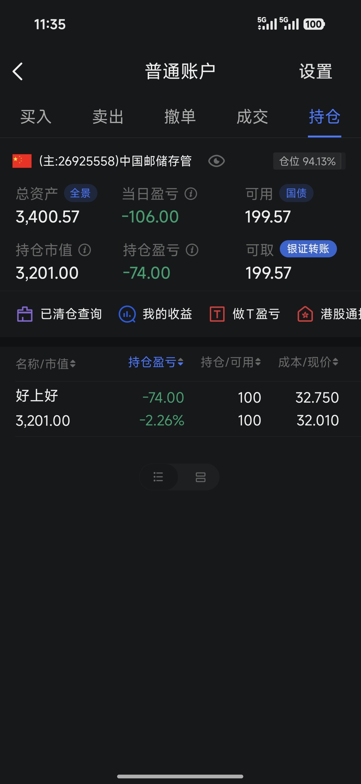 今天猫着,不过别人补仓,我倒着来,先把利润提前锁定,转出!哈哈哈