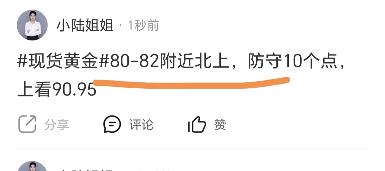 #现货黄金#80附近北上现在已经到达第一目标90,10个点收货,先减仓推保护