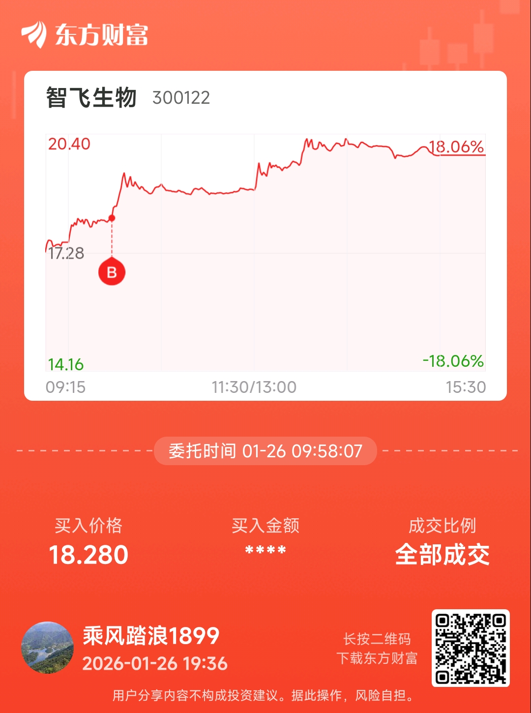 温馨提示: 1.根据《证券法》规定,禁止编造、传播虚假信息或者误导性信息,扰乱证券市场;2.用户在本社区发表的所有资料、言论等仅代表个人观点,与本网站立场无关,不对您构成任何投资建议。用户应基于自己的独立判断,自行决定证券投资并承担相应风险。《东方财富社区管理规定》
